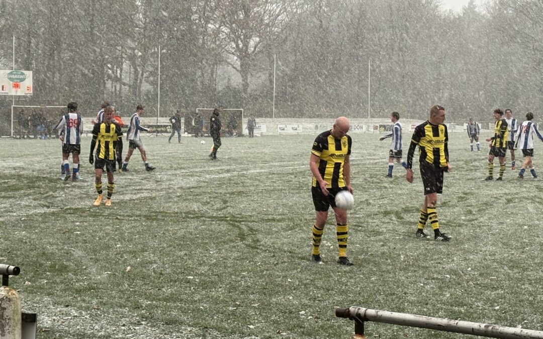 In de sneeuw krijgt Speelman met nog tien minuten op de klok nog een aardige kopkans, maar Linssen redt in de korte hoek. Een minuut voor tijd scoort Speelman alsnog, als hij een bal voor z’n voeten krijgt rond de strafschopstip en hij deze in het dak van het doel ramt: 1-3.