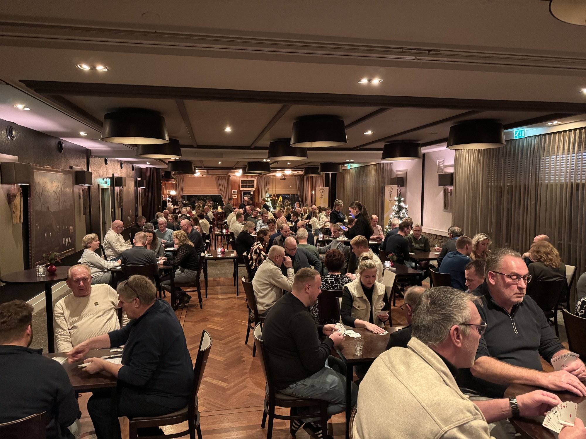 Café Zwaneveld was woensdagavond weer het decor van een mooie GOMOS-traditie. Ons clubcafé zat op kerstavond met 100 kaarters afgeladen vol en na vier gezellige boompjes werd Onno de Vries rond de klok van 01.30 uur uitgeroepen tot de grote winnaar van het Univé GOMOS-Kerstklaverjassen!